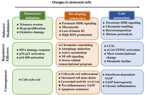 Roger, L.; Tomas, F.; Gire, V. Mechanisms and Regulation of Cellular Senescence. Int. J. Mol. Sci. 2021, 22, 13173. https://doi.org/10.3390/ijms222313173