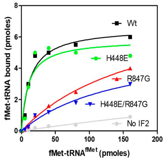 2.4. The IF2 Mutants Bearing the R847G Substitution Have a Reduced Affinity for fMet-tRNA