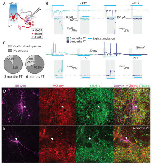 33]. In our study, we report the continuing maturation of the grafted hdInts from three- to six-months PT with an increase in efferent synapse formation over time.