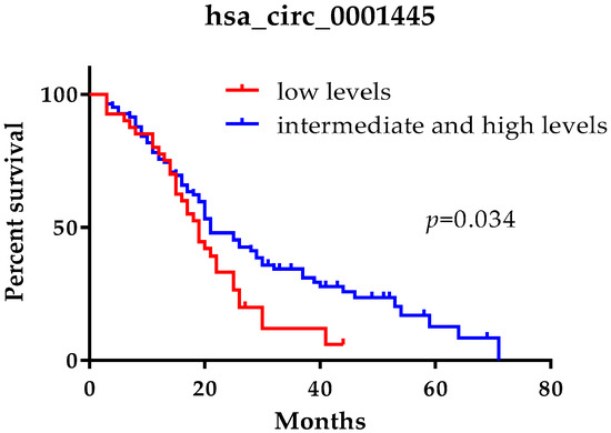 2.5. Low hsa_circ_0001445 Levels in Plasma Are Associated with Short Survival