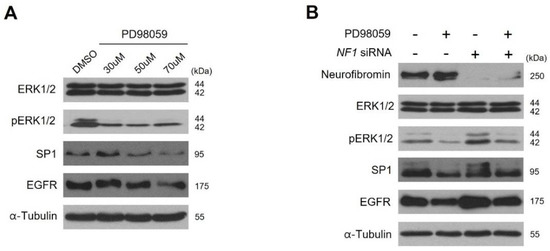 2.4. Neurofibromin Modulates the Ras/ERK/SP1 Dependent EGFR Expression