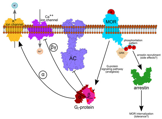 - Cuitavi, J.; Hipólito, L.; Canals, M. The Life Cycle of the Mu-Opioid Receptor. Trends Biochem. Sci. 2020, 46, 315–328. [Google Scholar] [CrossRef] [PubMed]