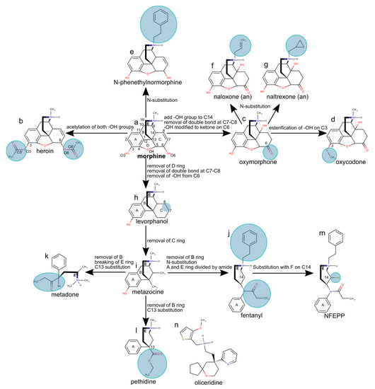 - Manglik, A.; Kruse, A.C.; Kobilka, T.S.; Thian, F.S.; Mathiesen, J.M.; Sunahara, R.K.; Pardo, L.; Weis, W.I.; Kobilka, B.K.; Granier, S. Crystal Structure of the Μ-Opioid Receptor Bound to a Morphinan Antagonist. Nature 2012, 485, 321–326. [Google Scholar] [CrossRef]