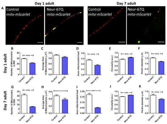 2.2. Differences in Mitochondrial Morphology in Neuronal Model of Polyglutamine Toxicity Are Exacerbated with Increasing Age