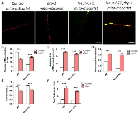 - JVR611 rmIs284[rgef-1p::67Q:YFP];drp-1(tm1108); sybIs3820[rab-3p::tomm-20::mScarlet] referred to as Neur-67Q;drp-1;mito-mScarlet