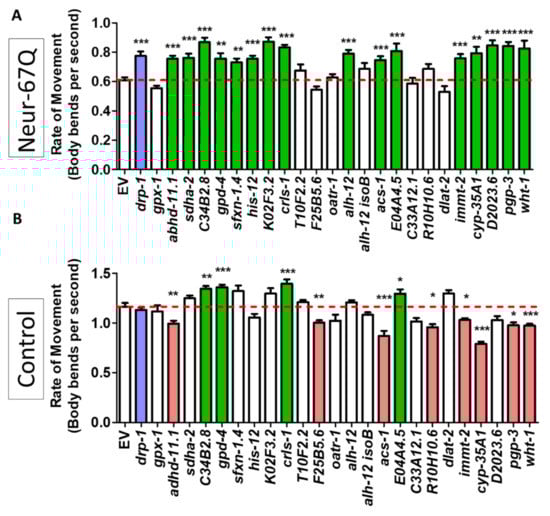 - Lejeune, F.X.; Mesrob, L.; Parmentier, F.; Bicep, C.; Vazquez-Manrique, R.P.; Parker, J.A.; Vert, J.P.; Tourette, C.; Neri, C. Large-scale functional RNAi screen in C. elegans identifies genes that regulate the dysfunction of mutant polyglutamine neurons. BMC Genom. 2012, 13, 91. [Google Scholar] [CrossRef] [PubMed]