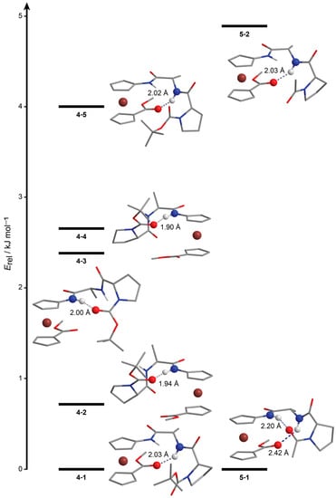 - Siebler, C.; Maryasin, B.; Kümin, M.; Erdmann, R.S.; Rigling, C.; Grünenfelder, C.; Ochsenfeld, C.; Wennemers, H. Importance of Dipole Moments and Ambient Polarity for the Conformation of Xaa-Pro Moieties–A Combined Experimental and Theoretical Study. Chem. Sci. 2015, 6, 6725–6730. [Google Scholar] [CrossRef] [PubMed] [Green Version]