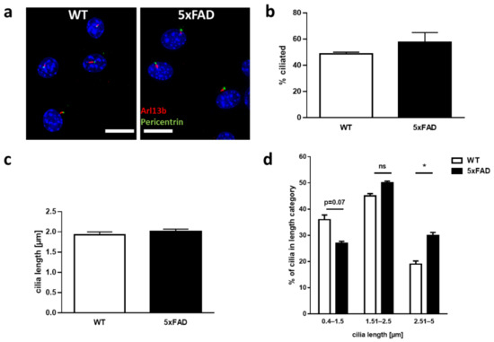 Nguyen, V.T.T.; Brücker, L.; Volz, A.-K.; Baumgärtner, J.C.; dos Santos Guilherme, M.; Valeri, F.; May-Simera, H.; Endres, K. Primary Cilia Structure Is Prolonged in Enteric Neurons of 5xFAD Alzheimer’s Disease Model Mice. Int. J. Mol. Sci. 2021, 22, 13564. https://doi.org/10.3390/ijms222413564