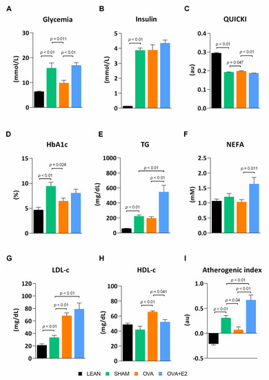 - Tawfik, S.H.; Mahmoud, B.F.; Saad, M.I.; Shehata, M.; Kamel, M.; Helmy, M.H. Similar and Additive Effects of Ovariectomy and Diabetes on Insulin Resistance and Lipid Metabolism. Biochem. Res. Int. 2015, 2015, 1–8. [Google Scholar] [CrossRef] [PubMed] [Green Version]