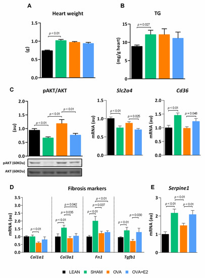 2.6. Effects of Ovariectomy and E2 Supplementation on Cardiac Insulin Pathway and Fibrosis