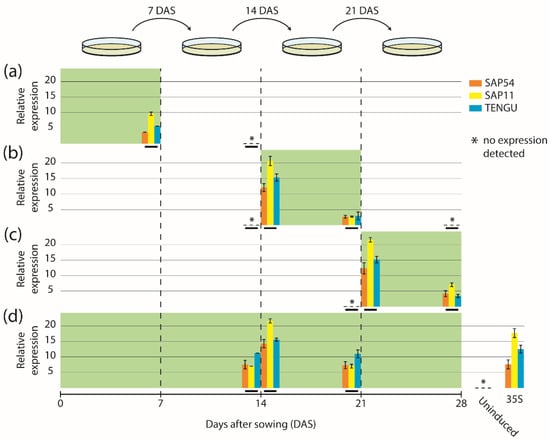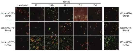 2.2. Comparative Time-Course Analyses of SAP54, SAP11, and TENGU Induction