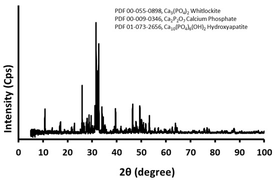 The whiskers also contained approximately 72% bioactive hydroxyapatite, which is more degradable, and whitlockite and calcium pyrophosphate in the amounts of approximately 15% and 12%, respectively (Figure 2) [24]. The assumption of the whiskers application was also that different degradation rates of individual phases in the whiskers could improve reinforcement and osteoconduction during a long PCL composite degradation.