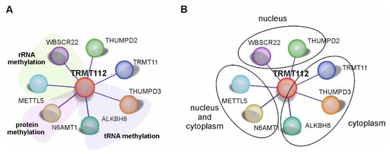 TRMT112 interactome. MTases interacting directly with TRMT112 are shown together with their known enzymatic activities (A) and cellular localisation (B).