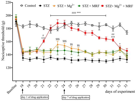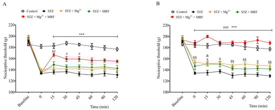 2.1. The Influence of Mg2+ on the Analgesic Effect of Morphine in Streptozotocin-Induced Hyperalgesia after Mechanical Stimulation