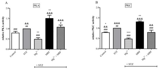 2.3. Changes in the Activity of Protein Kinase A and Protein Kinase C in the Streptozotocin-Treated Rats after Administration of Tested Compounds