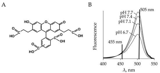 To ensure the specificity of the pH changes when using ClopHsensor, we performed a series of experiments with the pH-sensitive dye BCECF-AM [36]. This compound is well tolerated by cells and offers ratiometric estimation of pH values.