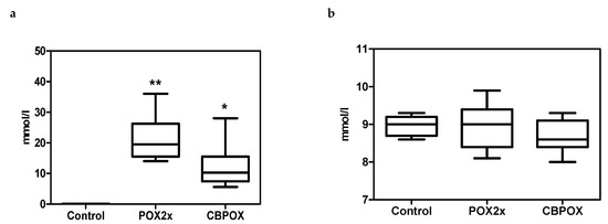 | CBPOX | 24 h | In plasma: Creatinine Calcium Inorganic phosphate Alkaline phosphataseIn urine: Glucose CSCreatinine clearance: ECC | No change | No change |