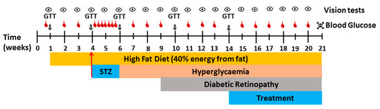 Supplementary materials can be found at https://www.mdpi.com/1422-0067/22/3/1016/s1, Table S1: List of primary and secondary antibodies used for immunohistology, Table S2: Total eyes per treatment group used for immunohistochemistry, Table S3: Animal included in behavioral study over the 21 week period, Figure S1: Effect of STZ on blood glucose levels.