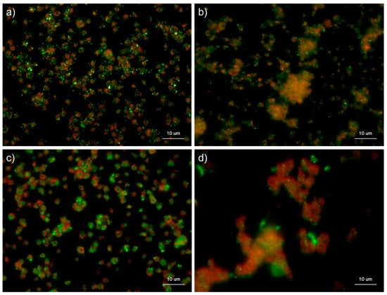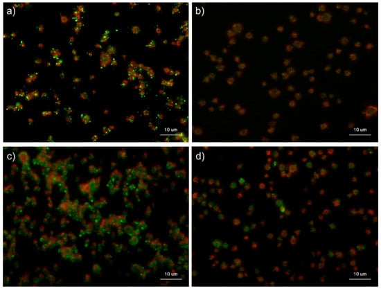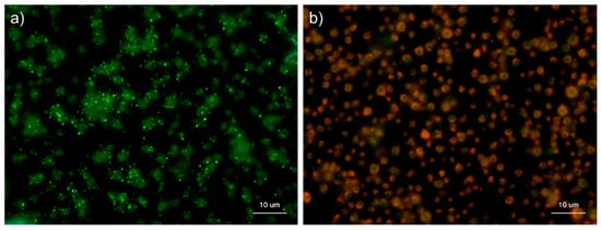 Figure 11 shows the effects of ADP on the distribution of polyP and serotonin in platelets. ADP, an activator of platelets [], was used to examine the similarity in the mobilization of polyP and serotonin. In the control, as observed in Figure 10, granular polyP and serotonin were observed in platelets. When activated by 5 mM ADP for 60 min, the particles disappeared, but the typical diffusion observed above was not detected.