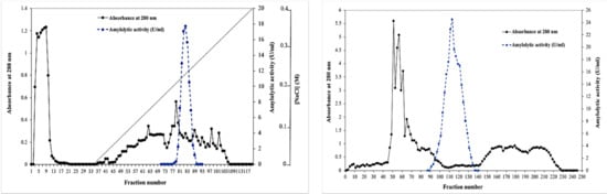 - Lim, S.J.; Oslan, S.N.H.; Oslan, S.N. Purification and characterization of thermostable α-amylases from microbial sources. BioResources 2020, 15, 2005–2029. [Google Scholar]