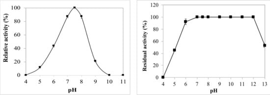2.2.2. Effects of pH on Enzyme Activity and Stability