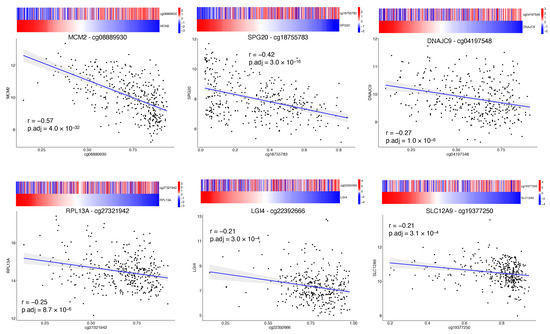 3.2. Correlation of Final CpG Site Methylation and Matched Gene Expression