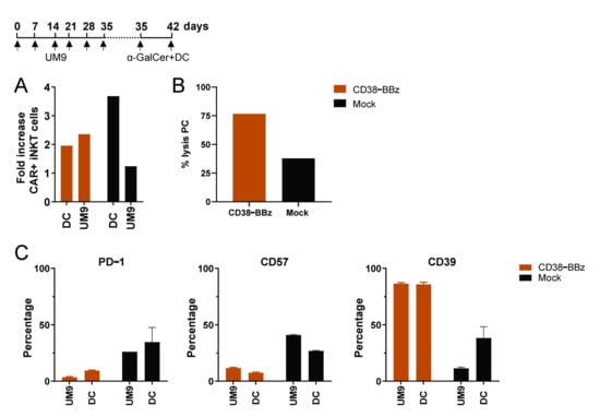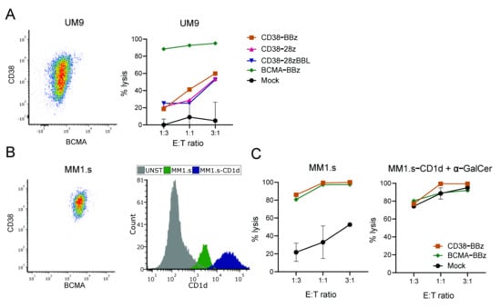 Poels, R.; Drent, E.; Lameris, R.; Katsarou, A.; Themeli, M.; van der Vliet, H.J.; de Gruijl, T.D.; van de Donk, N.W.C.J.; Mutis, T. Preclinical Evaluation of Invariant Natural Killer T Cells Modified with CD38 or BCMA Chimeric Antigen Receptors for Multiple Myeloma. Int. J. Mol. Sci. 2021, 22, 1096. https://doi.org/10.3390/ijms22031096