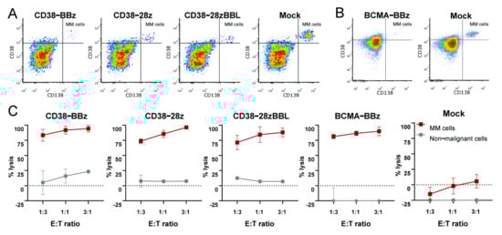 - Drent, E.; Groen, R.W.; Noort, W.A.; Themeli, M.; Lammerts van Bueren, J.J.; Parren, P.W.; Kuball, J.; Sebestyen, Z.; Yuan, H.; de Bruijn, J.; et al. Pre-clinical evaluation of CD38 chimeric antigen receptor engineered T cells for the treatment of multiple myeloma. Haematologica 2016, 101, 616–625. [Google Scholar] [CrossRef] [PubMed]