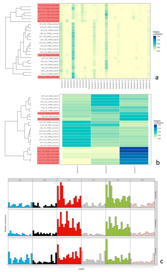 - Alexandrov, L.B.; Zainal, S.N.; Wedge, D.C.; Campbell, P.J.; Stratton, M.R. Deciphering signatures of mutational processes operative in human cancer. Cell Rep. 2013, 3, 246–259. [Google Scholar] [CrossRef] [PubMed]