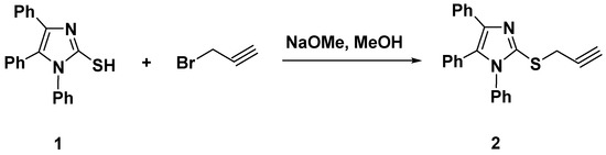 3.1.1. Synthesis and Characterization of 1,4,5-triphenyl-2-(prop-2-yn-1-ylthio)-1H-imidazole (2)