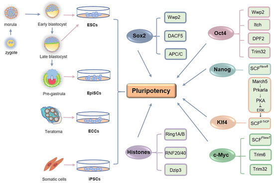 Chicago/Turabian StyleWu, Yahong, and Weiwei Zhang. 2021. "The Role of E3s in Regulating Pluripotency of Embryonic Stem Cells and Induced Pluripotent Stem Cells" International Journal of Molecular Sciences 22, no. 3: 1168. https://doi.org/10.3390/ijms22031168