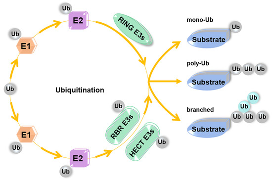 - Sui, X.; Wang, Y.; Du, Y.-X.; Liang, L.-J.; Zheng, Q.; Li, Y.-M.; Liu, L. Development and application of ubiquitin-based chemical probes. Chem. Sci. 2020, 11, 12633–12646. [Google Scholar] [CrossRef]