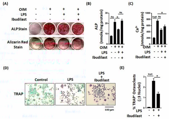 2.3. Effects of Ibudilast on LPS-Induced Inhibition of Bone Formation In Vitro