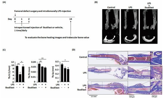 Chang Y, Hu C-C, Wu Y-Y, Ueng SWN, Chang C-H, Chen M-F. Ibudilast Mitigates Delayed Bone Healing Caused by Lipopolysaccharide by Altering Osteoblast and Osteoclast Activity. International Journal of Molecular Sciences. 2021; 22(3):1169. https://doi.org/10.3390/ijms22031169