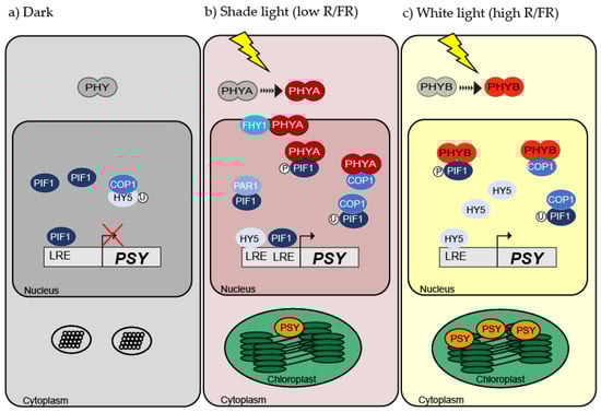 - Al-Sady, B.; Ni, W.; Kircher, S.; Schäfer, E.; Quail, P.H. Photoactivated phytochrome induces rapid PIF3 phosphorylation prior to proteasome-mediated degradation. Mol. Cell 2006, 23, 439–446. [Google Scholar] [CrossRef] [PubMed]