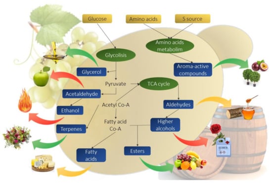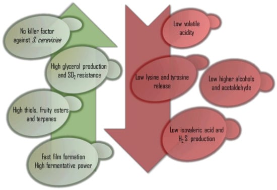 Different non-Saccharomyces yeast species have typically been evaluated for their influence on the overall quality of wine (Table 1) [5,6]. Some of these attributes are highly strain dependent, and there must be a proper selection process in order to select the most appropriate strains to improve wine quality at the industrial level.
