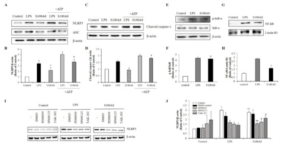 - Simard, J.-C.; Cesaro, A.; Chapeton-Montes, J.; Tardif, M.; Antoine, F.; Girard, D.; Tessier, P.A. S100A8 and S100A9 induce cytokine expression and regulate the NLRP3 inflammasome via ROS-dependent activation of NF-κB 1. PLoS ONE 2013, 8, e72138. [Google Scholar] [CrossRef] [PubMed]