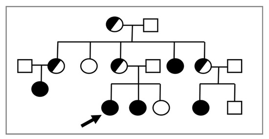 In consideration of the X-linked transmission, it is recommended to perform a karyotype in prepubertal female relatives of a proband, given the possible recurrence of CAIS within the same family (Figure 1).