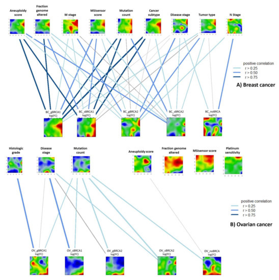 Sample groups in the breast (TCGA-BRCA) and ovarian (TCGA-OV) cancer datasets were used as separate layers in self-organizing maps (SOM) analysis.