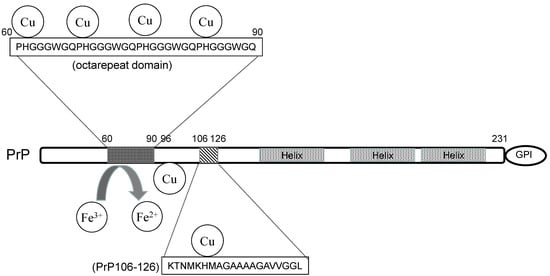 - Brown, D.R.; Qin, K.; Herms, J.W.; Madlung, A.; Manson, J.; Strome, R.; Fraser, P.E.; Kruck, T.; von Bohlen, A.; Schulz-Schaeffer, W.; et al. The cellular prion protein binds copper in vivo. Nature 1997, 390, 684–687. [Google Scholar] [CrossRef] [PubMed]