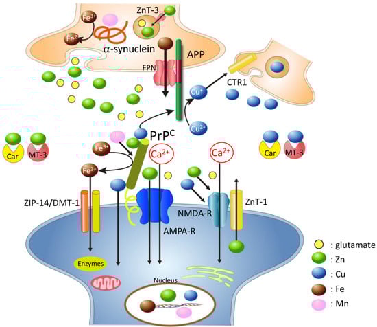 - Kawahara, M.; Kato-Negishi, M.; Tanaka, K.-I. Cross talk between neurometals and amyloidogenic proteins at the synapse and the pathogenesis of neurodegenerative diseases. Metallomics 2017, 9, 619–633. [Google Scholar] [CrossRef] [PubMed]
