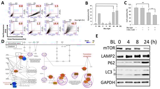 2.4. Cellular Autophagy Activation in ARPE-19 Cells Due to Blue Light Exposure