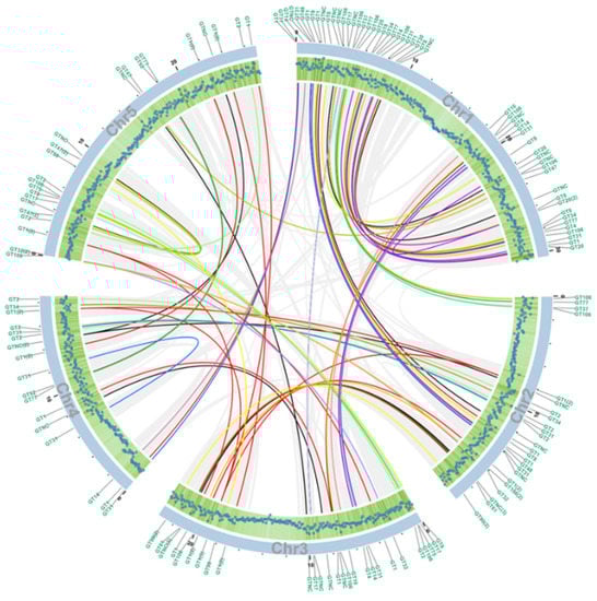 4.3. Analysis of Genome Collinearity and Chromosomal Localizations of GT Family Genes