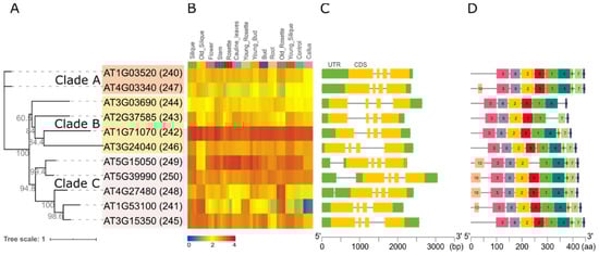 4.4. Publicly Available Microarray Data and Sequence Architecture Analysis for the Arabidopsis GT14 Family
