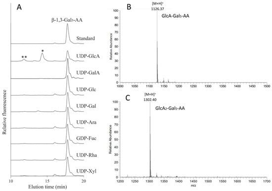 2.6. Characterization of the Donor Substrate Specificity of the AtGT14 Recombinant Proteins