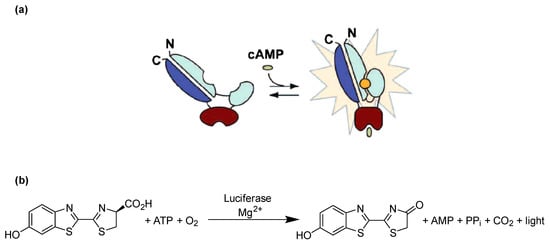 - Fan, F.; Binkowski, B.F.; Butler, B.L.; Stecha, P.F.; Lewis, M.K.; Wood, K.V. Novel genetically encoded biosensors using firefly luciferase. ACS Chem. Biol. 2008, 3, 346–351. [Google Scholar] [CrossRef]