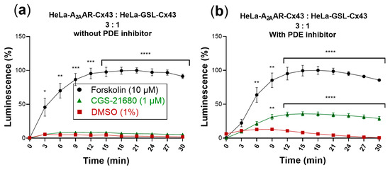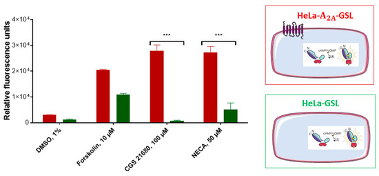 - Hinz, S.; Navarro, G.; Borroto-Escuela, D.; Seibt, B.F.; Ammon, Y.-C.; de Filippo, E.; Danish, A.; Lacher, S.K.; Červinková, B.; Rafehi, M.; et al. Adenosine A2A receptor ligand recognition and signaling is blocked by A2B receptors. Oncotarget 2018, 9, 13593–13611. [Google Scholar] [CrossRef]