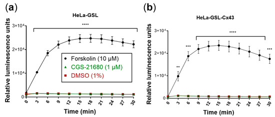 - Valiunas, V. Cyclic nucleotide permeability through unopposed connexin hemichannels. Front. Pharmacol. 2013, 4, 75. [Google Scholar] [CrossRef]