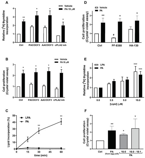 2.4. PA Stimulates Myoblast Proliferation in the Absence of LPA Formation