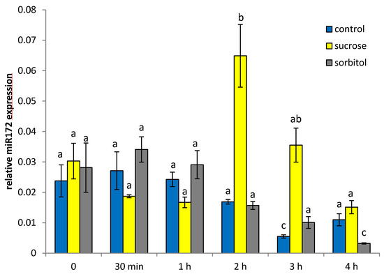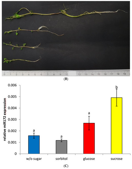 2.2. miR172 Is Induced by High Levels of Sucrose Both in Long Time and Short Time Experiments